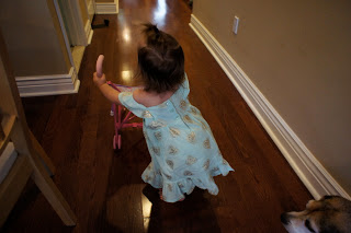 -She is a real kissing bandit this week. She puckers her lips and makes kissing noises. Yesterday we were with her b-friend Elliot and I said 'say goodbye to Elliot' and she leaned over and kissed him. They loved it so much they went back and forth kissing each other with HUGE smiles on their faces. It may have been the cutest/sweetest thing I have ever seen.