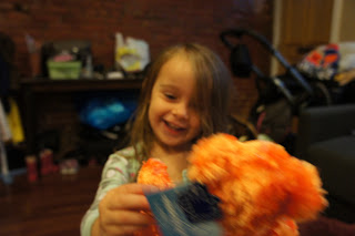 Scarlett asked Santa for an orange teddy bear names Pizza Pie and because she was such a great kid this year, he delivered. Thank you Bubby for the assist.